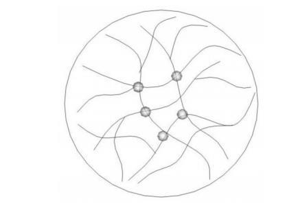聚合物驱是油田开发稳产增产最重要的技术手段之一,在国内外油田得到了广泛的应用。但聚驱后油藏储层非均质性加剧,剩余油分布更加分散,常规方法已经无法满足生产实践的需要。近年来,改性聚丙烯酰胺已成为研究热点,其中黏弹性颗粒驱油剂(B-PPG)由于其独特的性能更是得以快速发展。B-PPG是通过多官能团引发合成的高分子支化链与三维交联网络结构共存的聚丙烯酰胺,其分子结构示意图如Fig.1所示。这种“软固体”凝胶颗粒以固体颗粒的形式悬浮于溶液中,具有较好的变形能力,运移过程中时堵时驱,可以有效调节地层的非均质性。同时,其又具有较好的耐温抗盐、耐老化能力。目前,B-PPG驱油剂已经在胜利油田、河南油田推广应用,增油降水效果明显。