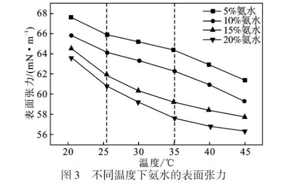 2.2 温度对氨水表面张力的影响